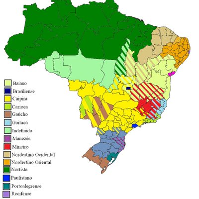 Um outro mapa de dialetos brasileiros (eu não sabia que o de Florianópolis é chamado "manezês")